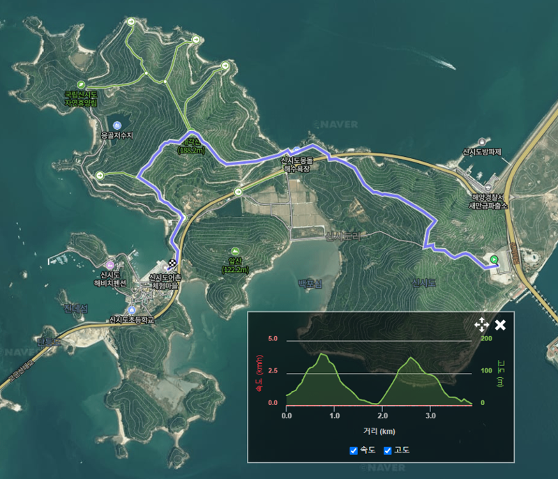 14:50 산길 코스 하산완료 및 승차 (신시도길 83-5 주차장)