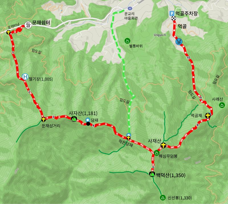 ■ 문재 → 백덕산 → 먹골 |